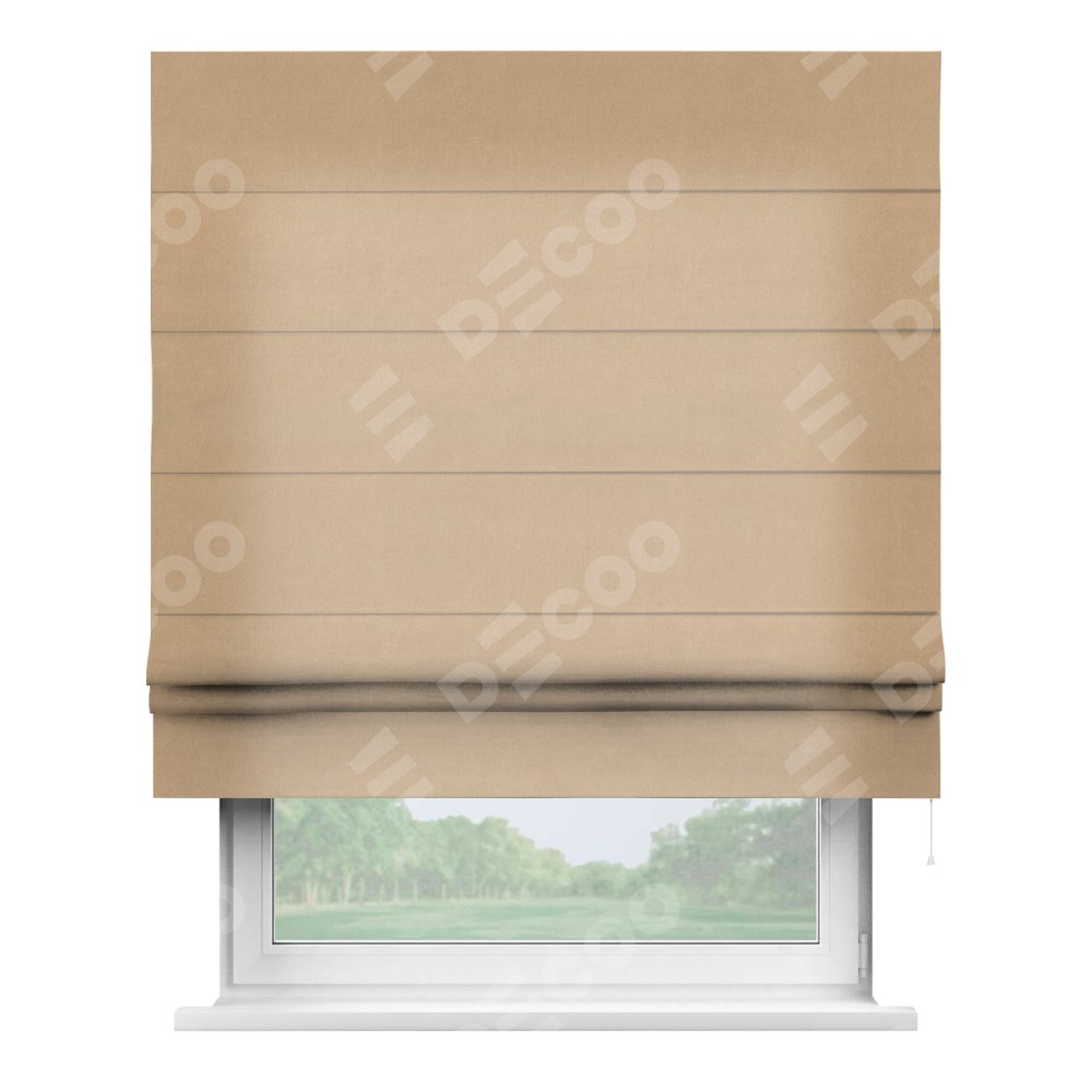 Римская штора производителя «Cortin», используется для проёма, пошита из ткани вельвет песочный, артикул ткани 17740. Имеет универсальный механизм и подходит для монтажа: на потолок, на стену и в нишу.