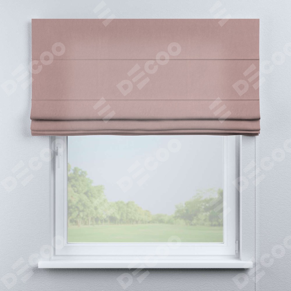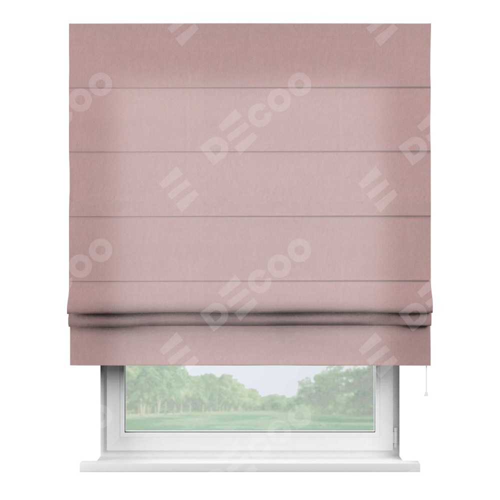 Римская штора производителя «Cortin», используется для проёма, пошита из ткани вельвет розовая пудра, артикул ткани 14132. Имеет универсальный механизм и подходит для монтажа: на потолок, на стену и в нишу.
