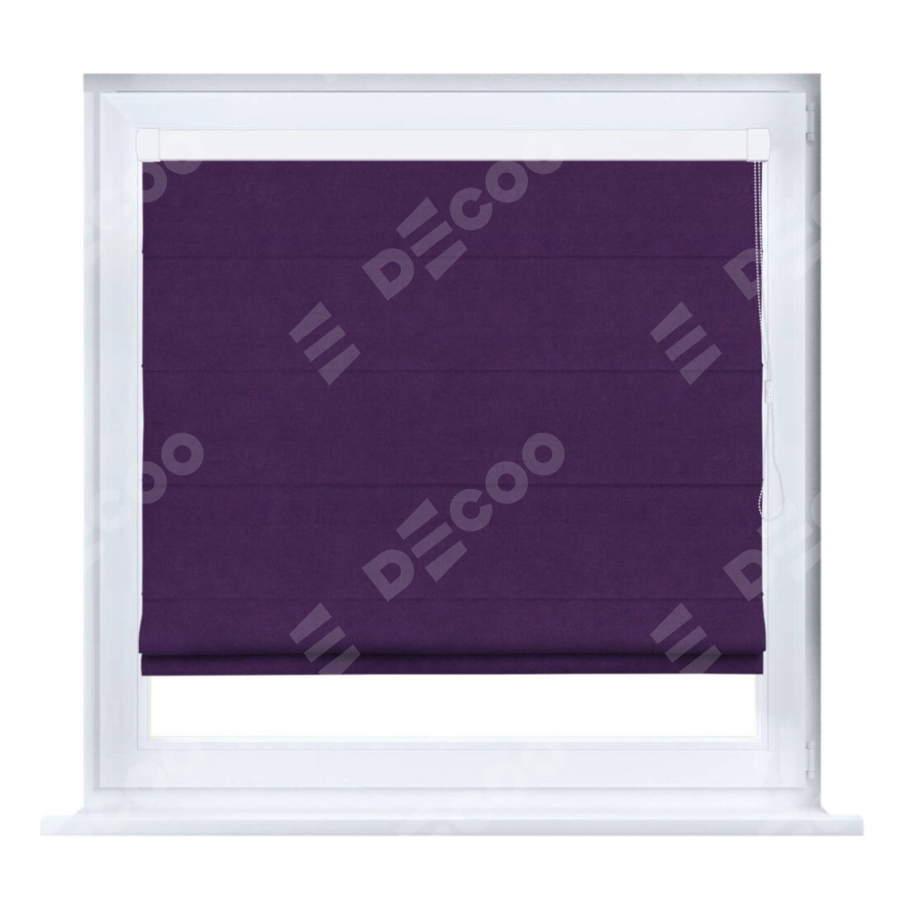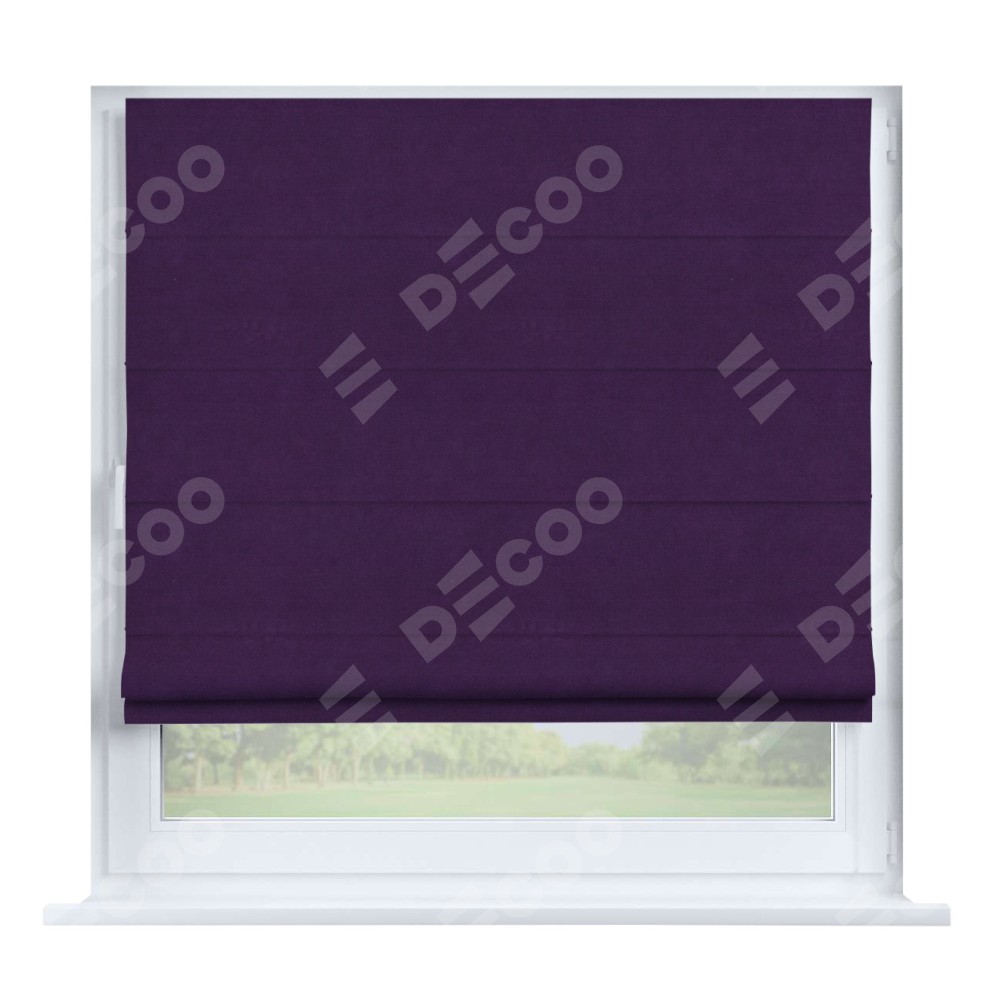 Римская штора производителя «Cortin», устанавливается на створку окна, пошита из ткани вельвет тёмно-фиолетовый, артикул 17753. Штора шьётся по индивидуальным размерам, для данного типа римской шторы возможная ширина от 35 до 150 см., высота до 250 см.