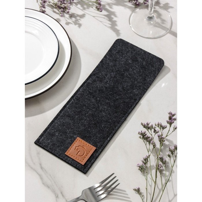 Конверт для столовых приборов Доляна «Грэй», 25×10 см, толщина 2 мм, цвет чёрный