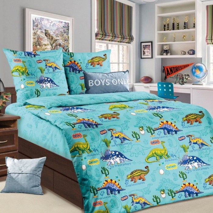 Постельное бельё 1,5сп ЛидерТекс Дино 145×215, 150×215, 70×70 1шт, бязь 120гр/м хл100%