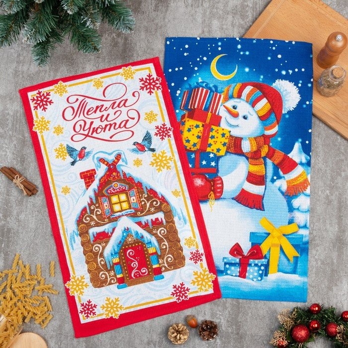 Набор полотенец кух. «Доляна» Пряничный домик 35х60см-2шт, 100% хл