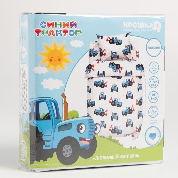Постельное бельё Синий трактор «Любимый малыш» 112×147 см, 60×120+20 см, 40×60 см, 100% хл, поплин 125г/м