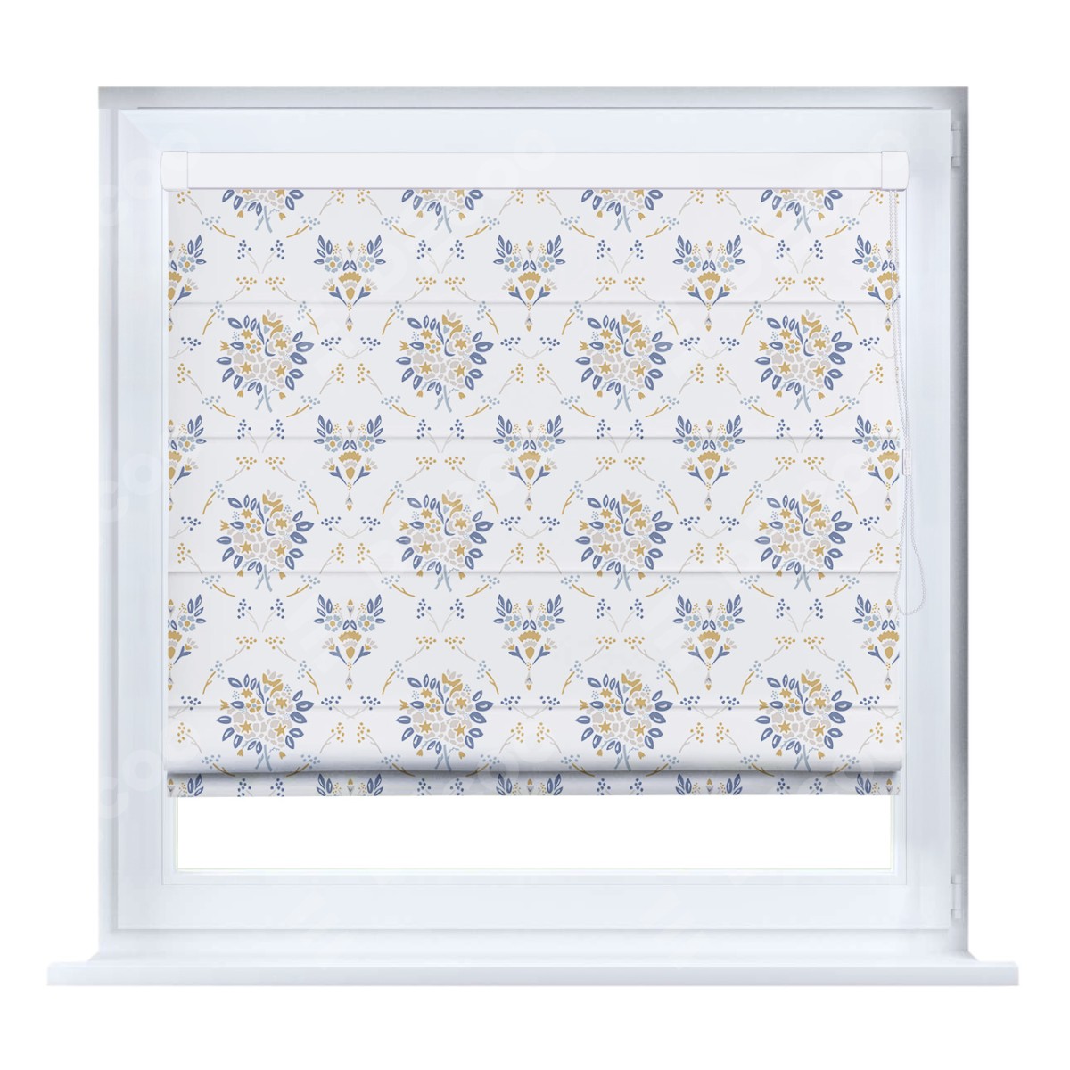 Римская штора кассетного типа, производителя «Cortin», устанавливается только на пластиковые окна и прилегает к стеклопакету, пошита из ткани блэкаут с нанесением сублимационной печати «Французский цветок».