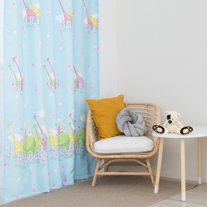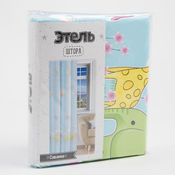 Портьера Этель «Саванна» без держателя, цвет голубой, 170×260 см, блэкаут, 100% полиэстер