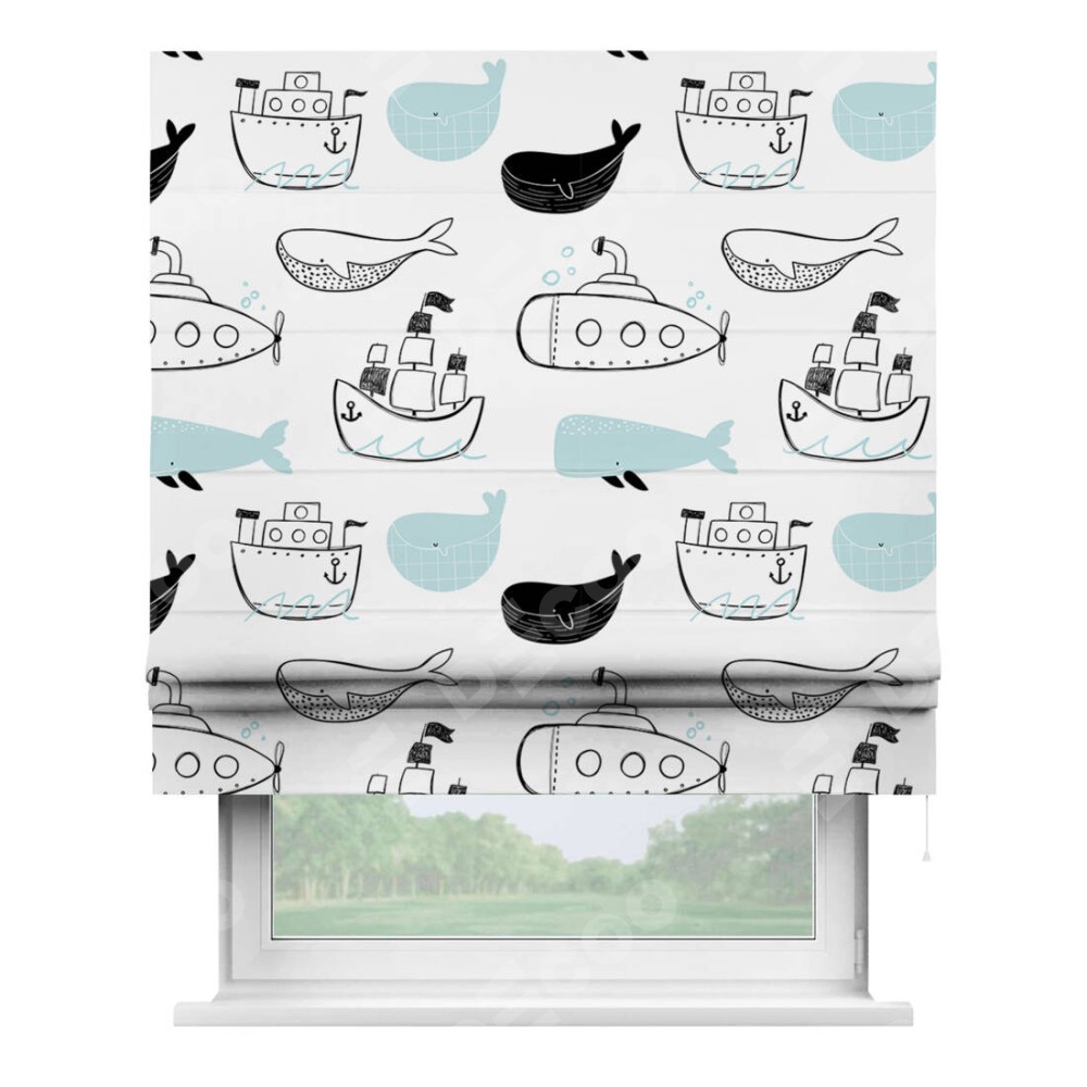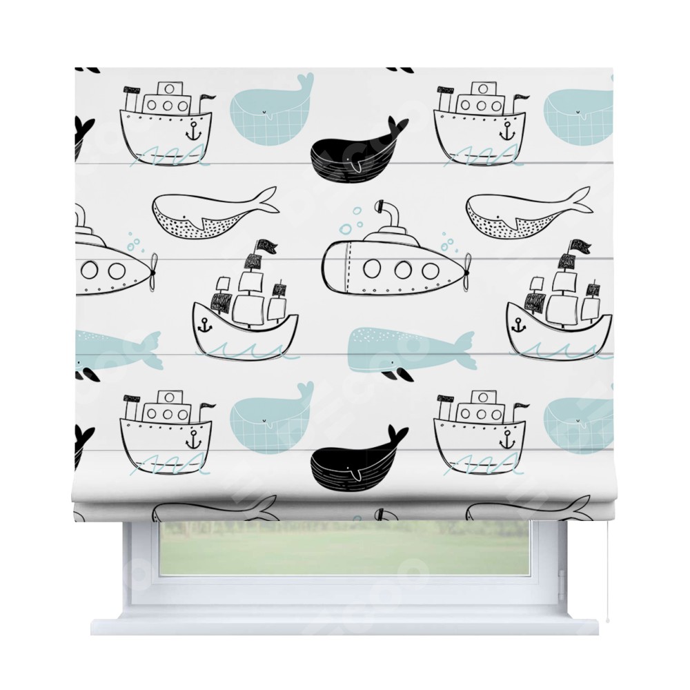 Римская штора производителя «Cortin», используется для проёма, пошита из ткани блэкаут с нанесением сублимационной печати «Морская прогулка». Имеет универсальный механизм и подходит для монтажа: на потолок, на стену и в нишу.