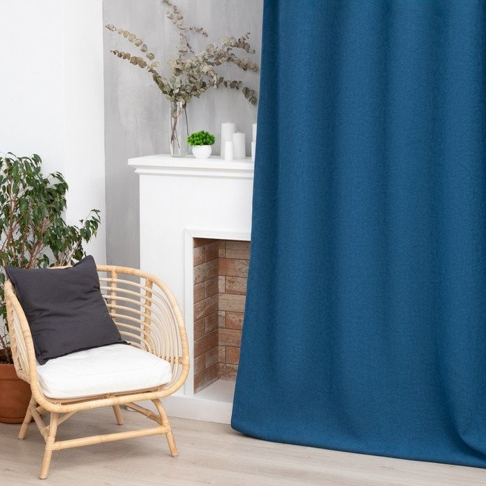 Штора портьерная Этель «Структурная», цвет синий, на шторной ленте, 270×300 см, 100% п/э