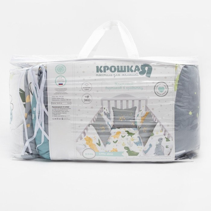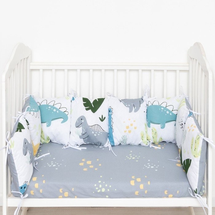 Бортики в кроватку Крошка Я «Little dino» (35×35 см — 8 шт), 100% хлопок