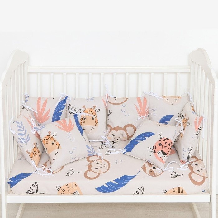 Бортики в кроватку Крошка Я «African friends» (35×35 см — 8 шт),100% хлопок