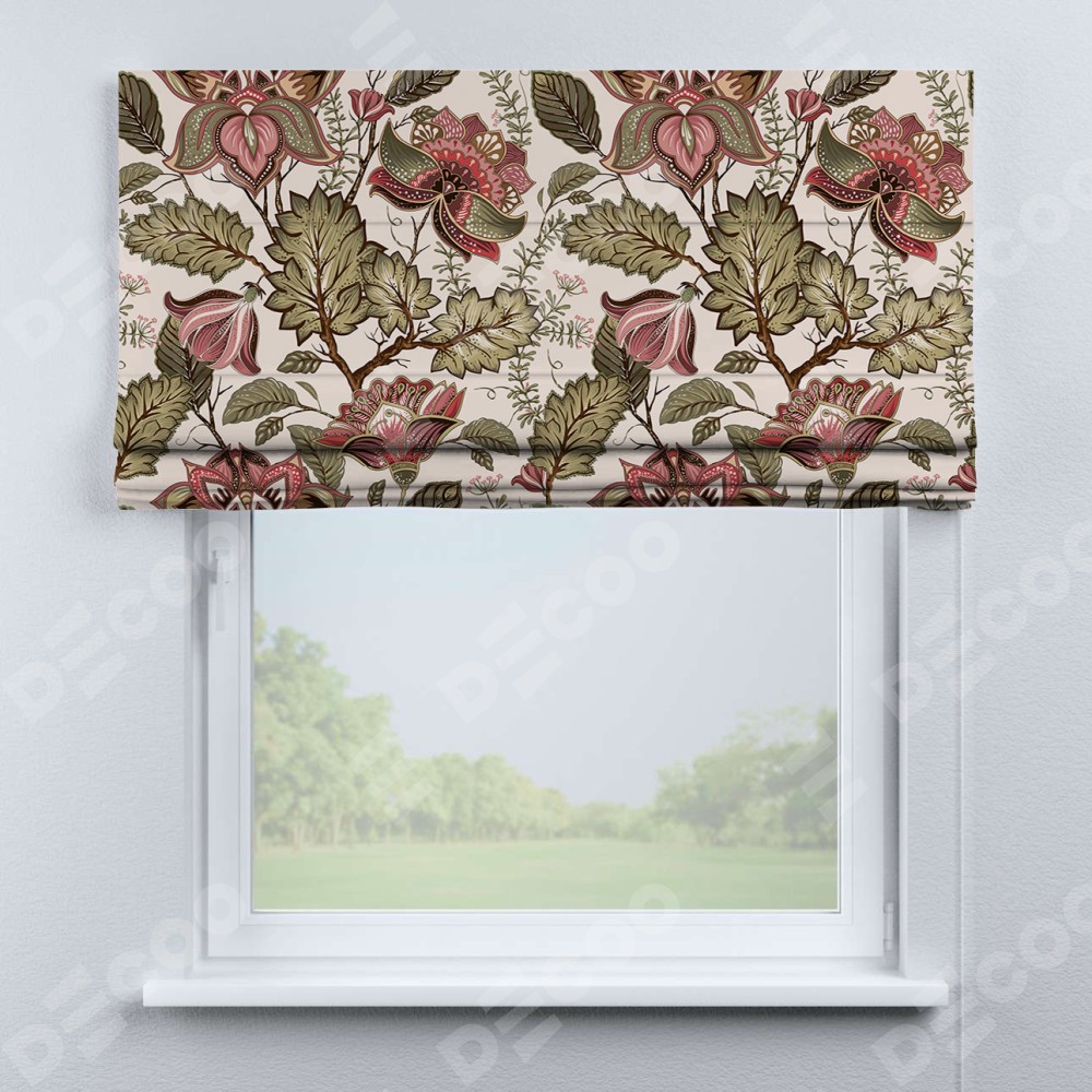 Римская штора производителя «Cortin», используется для проёма, пошита из ткани блэкаут с нанесением сублимационной печати «Старинные цветы». Имеет универсальный механизм и подходит для монтажа: на потолок, на стену и в нишу.