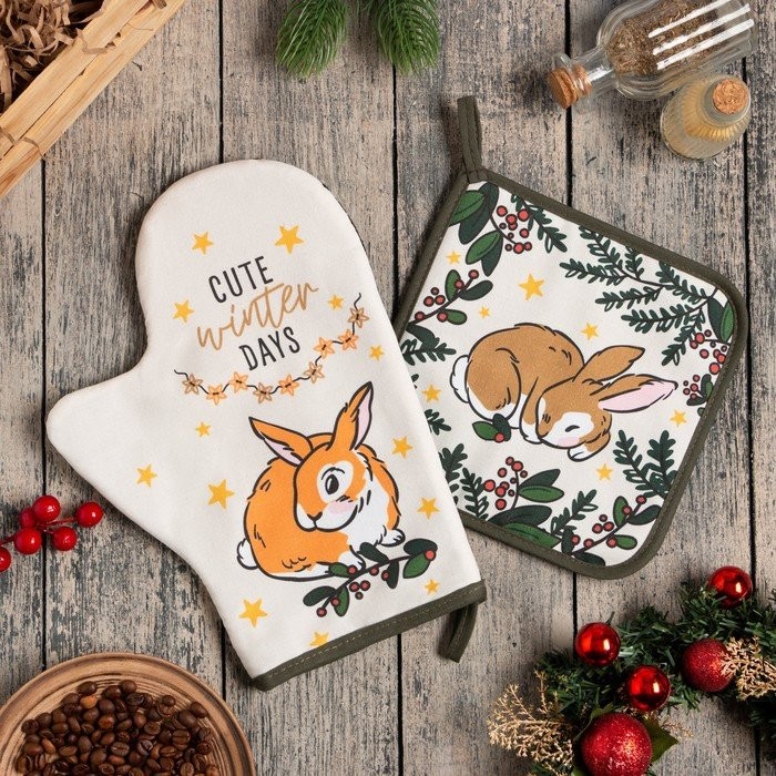 Набор кух. «Сute winter days» варежка-прихватка 20×28 см, прихватка 19×19 см, 100% хл