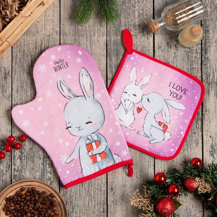 Набор кух. «Hello winter» варежка-прихватка 20×28 см, прихватка 19×19 см, 100% хл