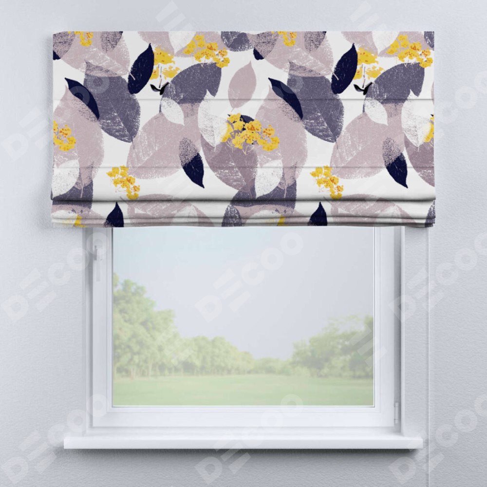 Римская штора производителя «Cortin», используется для проёма, пошита из ткани блэкаут с нанесением сублимационной печати «Листопад». Имеет универсальный механизм и подходит для монтажа: на потолок, на стену и в нишу.