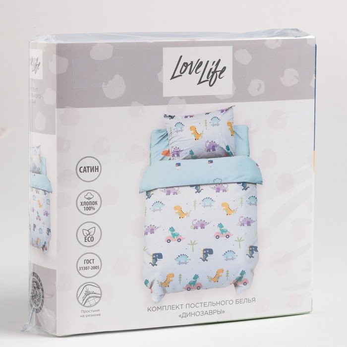 Постельное бельё 1.5сп LoveLife «Динозавры» 143×215 см, 150×214 см, 70×70 см-1 шт, 125г/м2 сатин