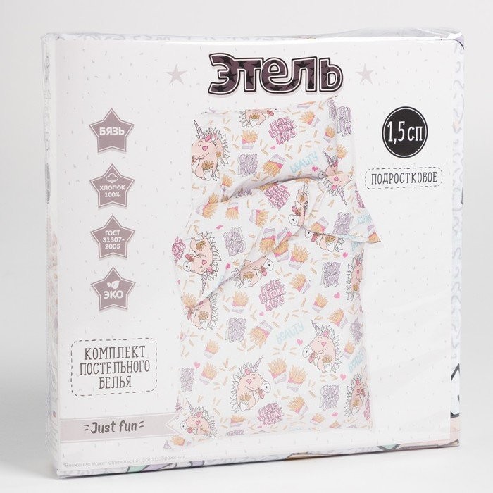 Постельное бельё Этель 1,5 сп «Just fun», 143×215 см, 150×214 см, 50×70 см -1 шт, 100% хлопок, бязь