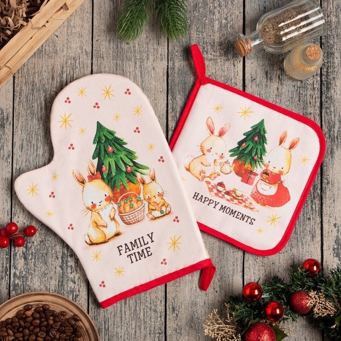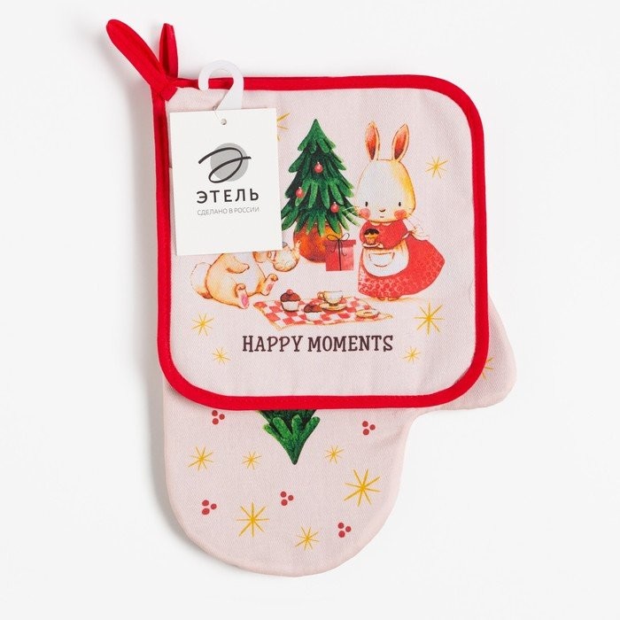 Набор кух. «Happy moments» варежка-прихватка 20×28 см, прихватка 19×19 см, 100% хл