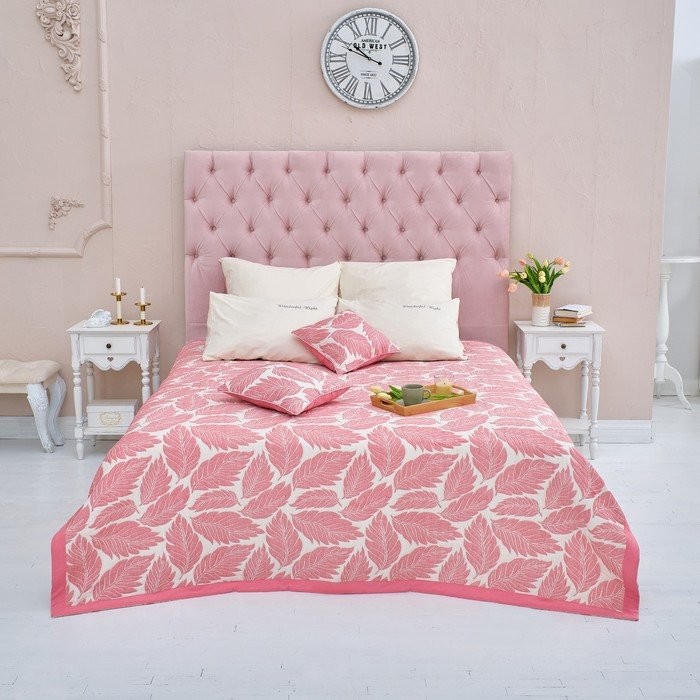 Покрывало хлопковое Этель «Листопад» 150×240 см, цвет розовый, 100% хлопок, 300гр/м2