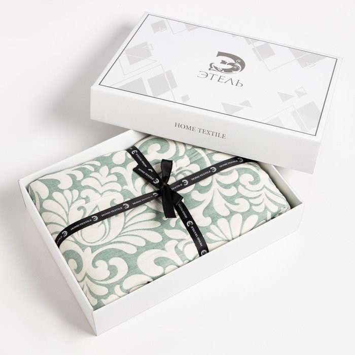 Покрывало хлопковое Этель «Узоры» 220×240 см, цвет зелёный, 100% хлопок, 300гр/м2
