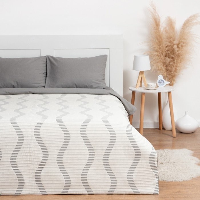 Покрывало хлопковое Этель «Волны» 200×240 см, цвет серый, 100% хлопок, 300гр/м2