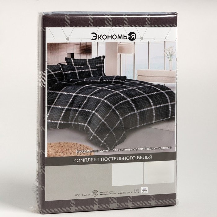 Постельное белье 2-х спальное «Клетка» 175×215, 200×215, 70×70−2 шт, сатин