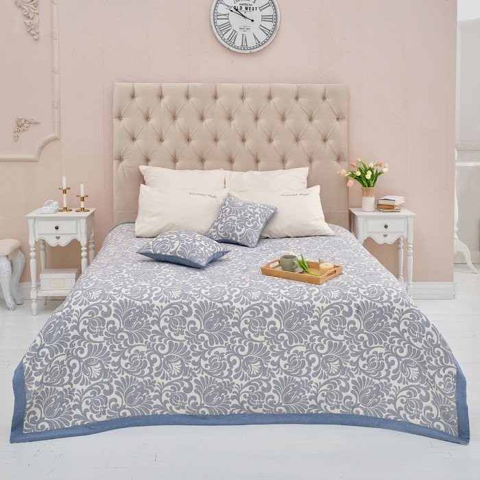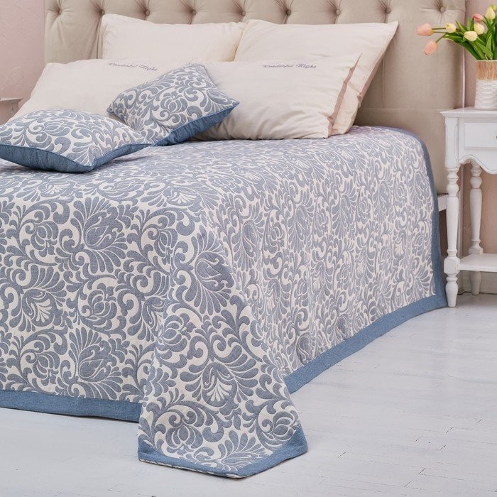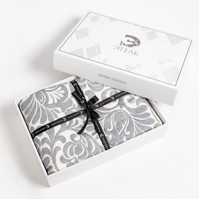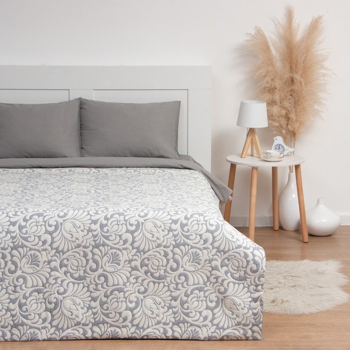 Покрывало хлопковое Этель «Узоры» 150×240 см, цвет серый, 100% хлопок, 300гр/м2