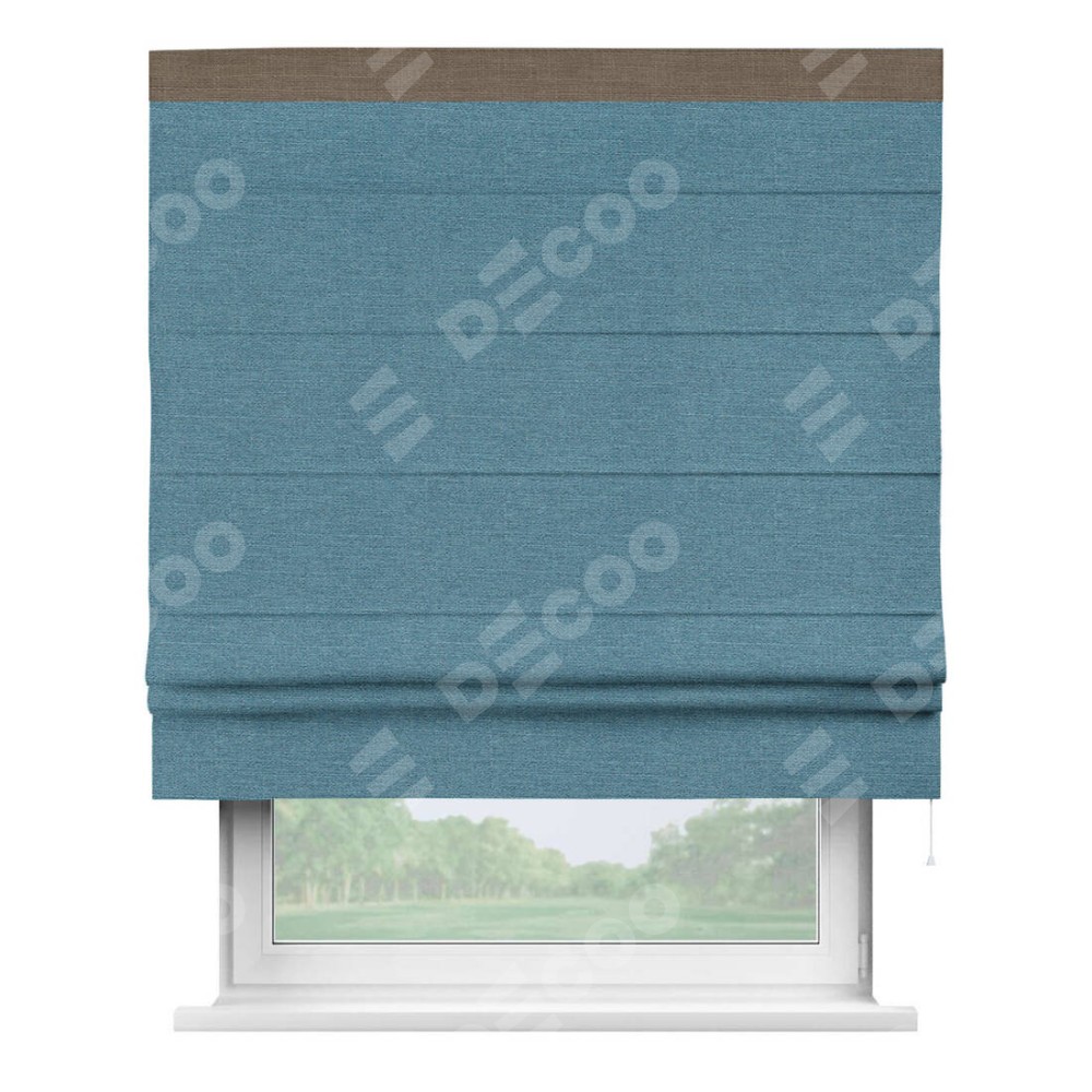 Римская штора «Кортин» с кантом Кинг, для проема, ткань лён голубой