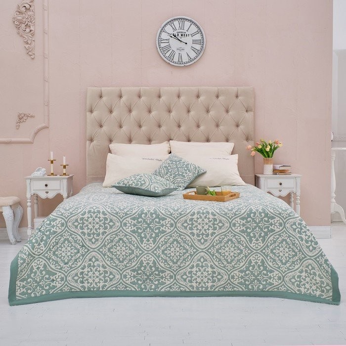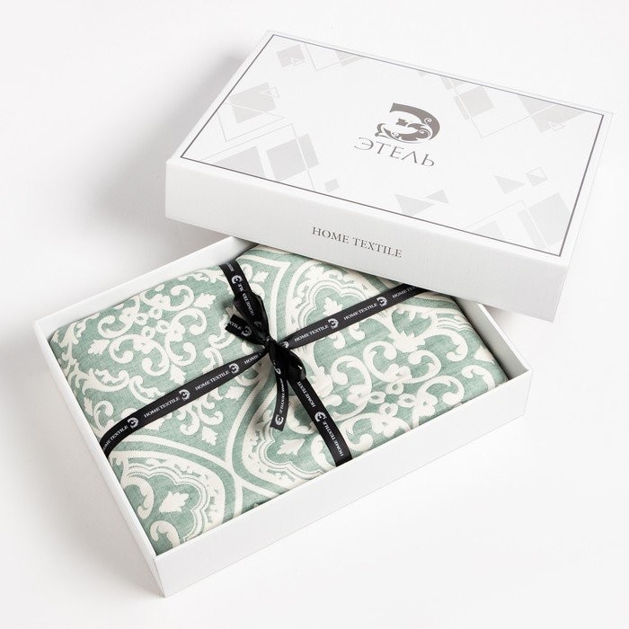 Покрывало хлопковое Этель «Орнамент» 220×240 см, цвет зелёный, 100% хлопок, 300гр/м2