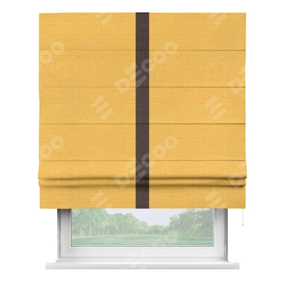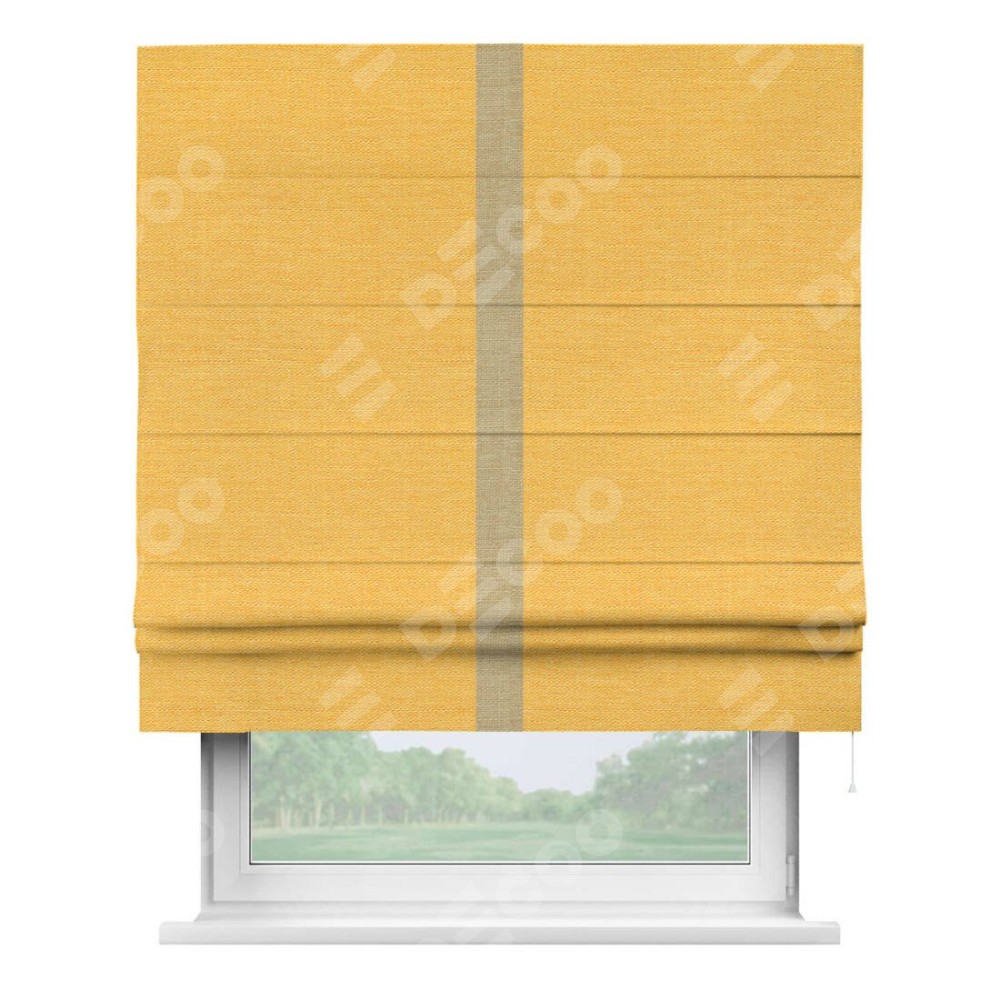 Римская штора «Кортин» с кантом Хайвэй, для проема, ткань лён желтый