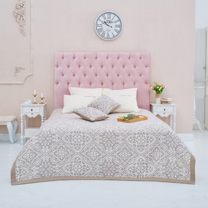 Покрывало хлопковое Этель «Орнамент» 220×240 см, цвет серый, 100% хлопок, 300гр/м2