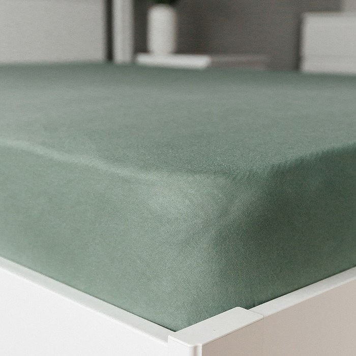 Простыня на резинке трикотажная, размер 120х200х25см, цвет хаки, кулирка 120г/м², 100% хлопок