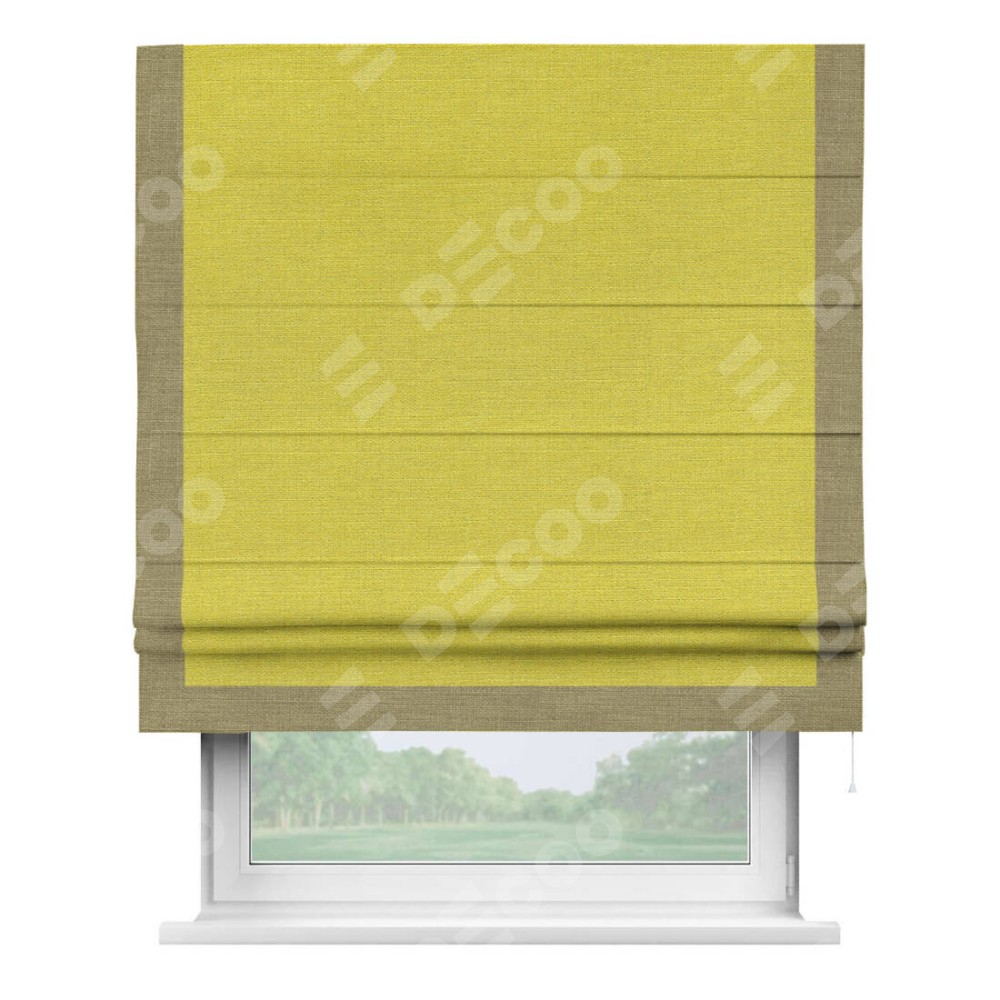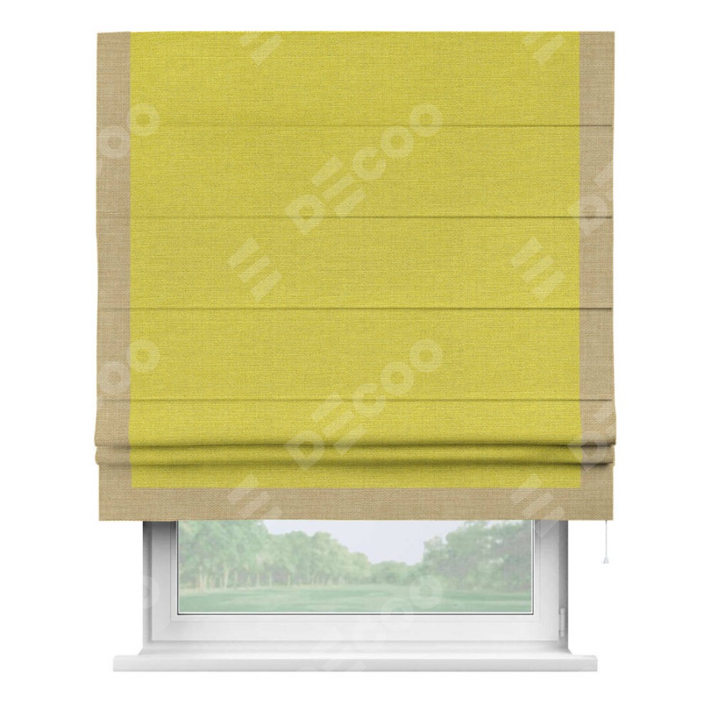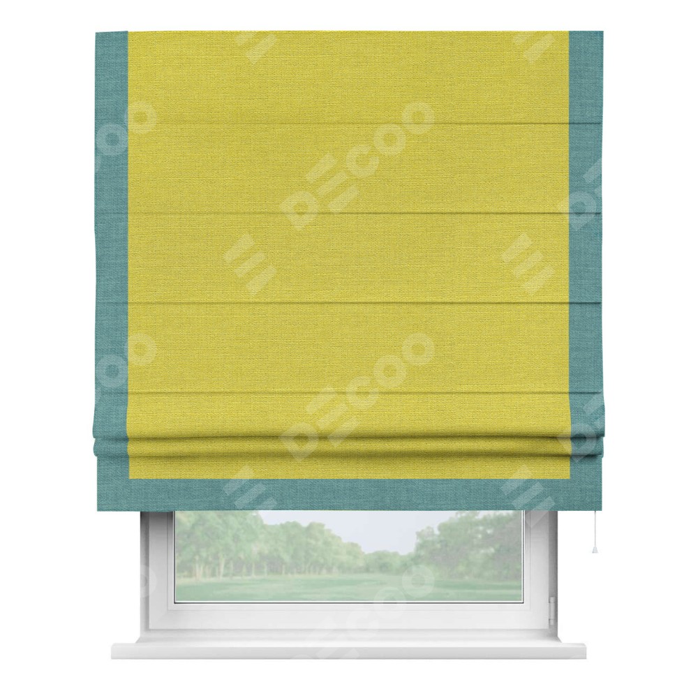 Римская штора «Кортин» с кантом Виктория, для проема, ткань лён салатовый
