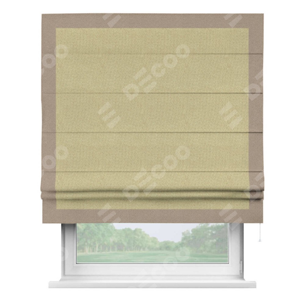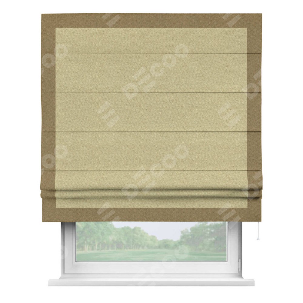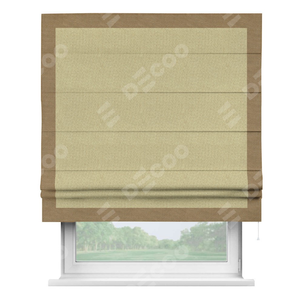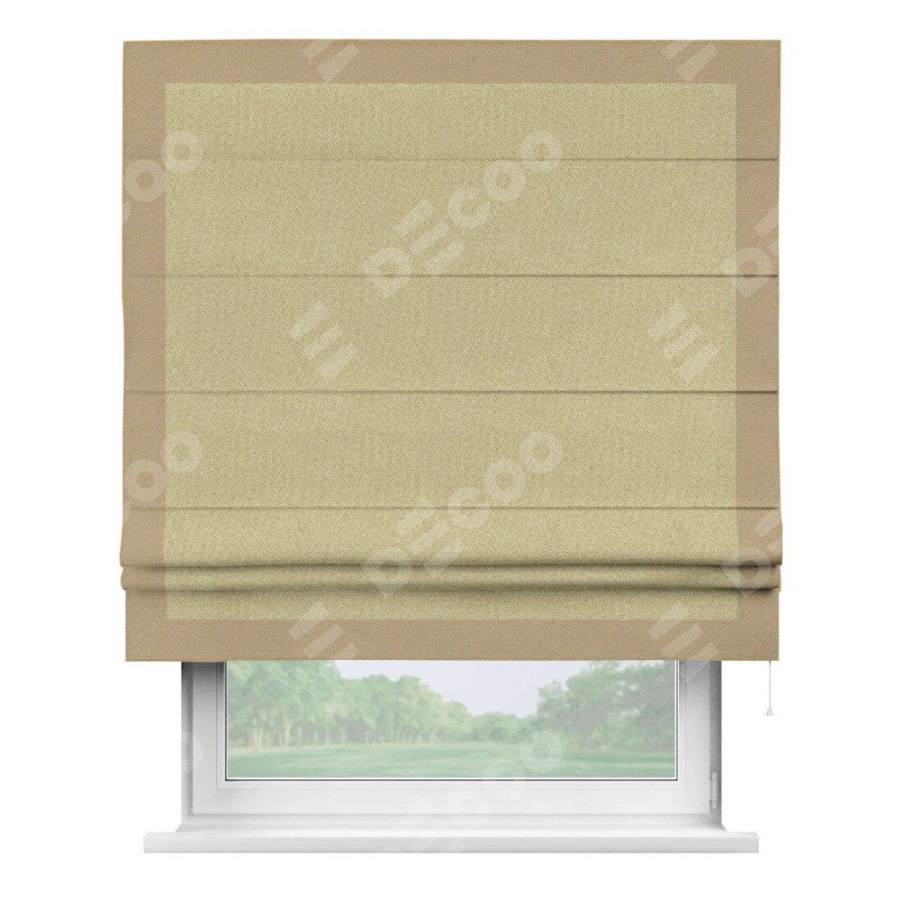 Римская штора «Кортин» с кантом Чесс, для проема, ткань лён димаут, песочный