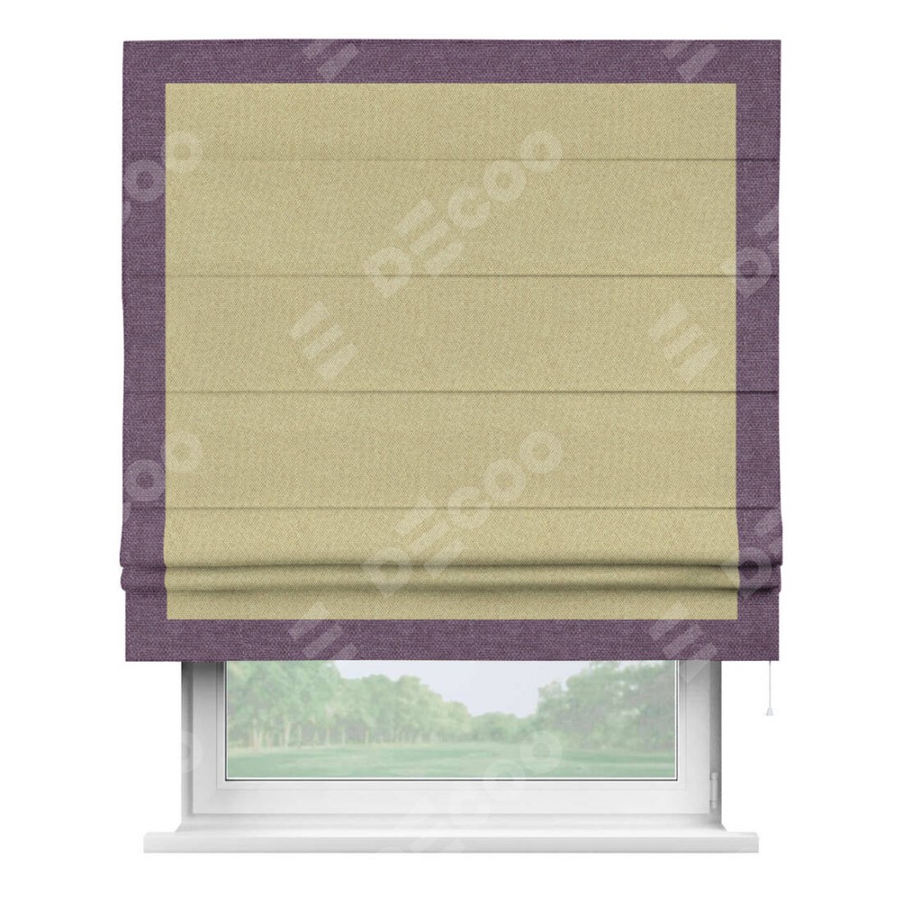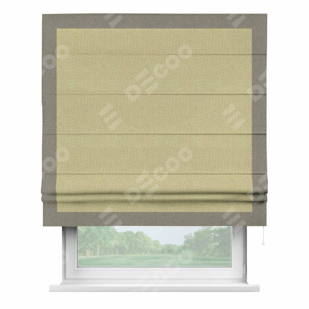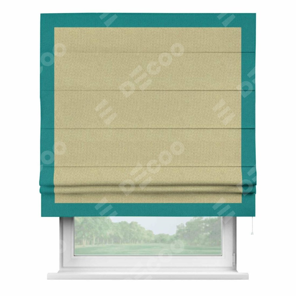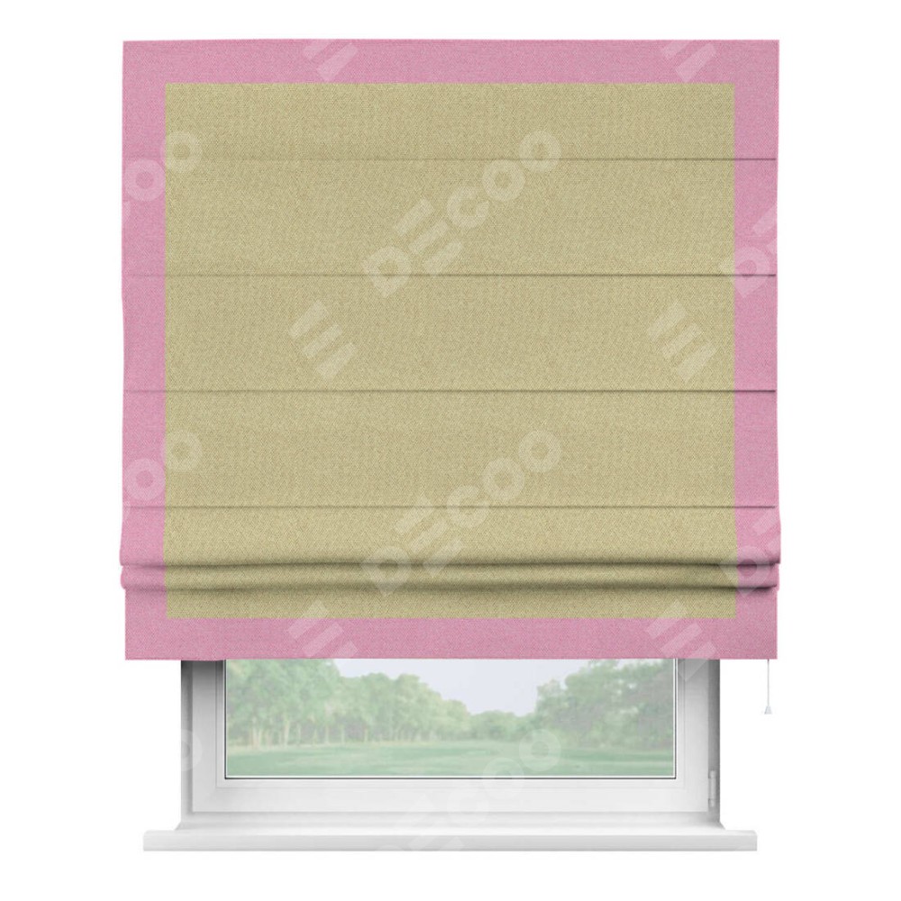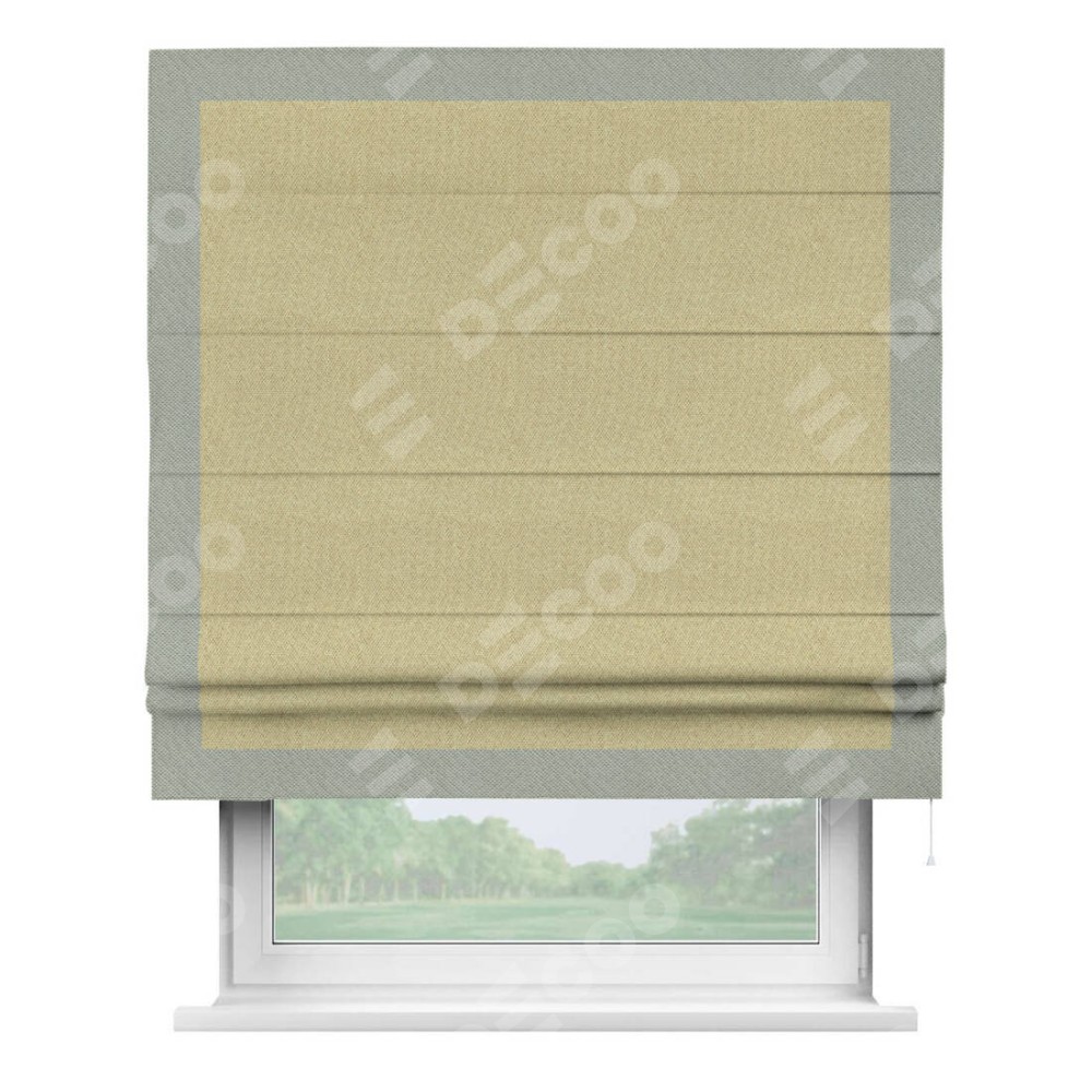 Римская штора «Кортин» с кантом Чесс, для проема, ткань лён димаут, песочный
