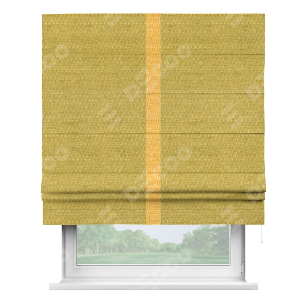 Римская штора производителя «Cortin», используется для проёма, пошита из ткани лён светло-салатовый, артикул 53438. Отделка шторы кантом «Хайвэй», ткань для канта используется из льна разной расцветки на выбор. Имеет универсальный механизм и подходит для монтажа: на потолок, на стену и в нишу.