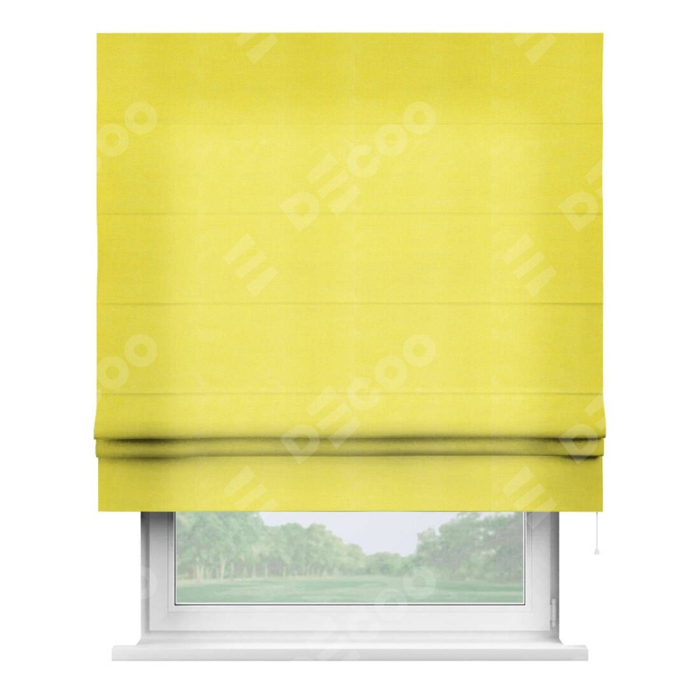Римская штора производителя «Cortin», используется для проёма, пошита из ткани вельвет светло-желтый, артикул ткани 30997. Имеет универсальный механизм и подходит для монтажа: на потолок, на стену и в нишу.