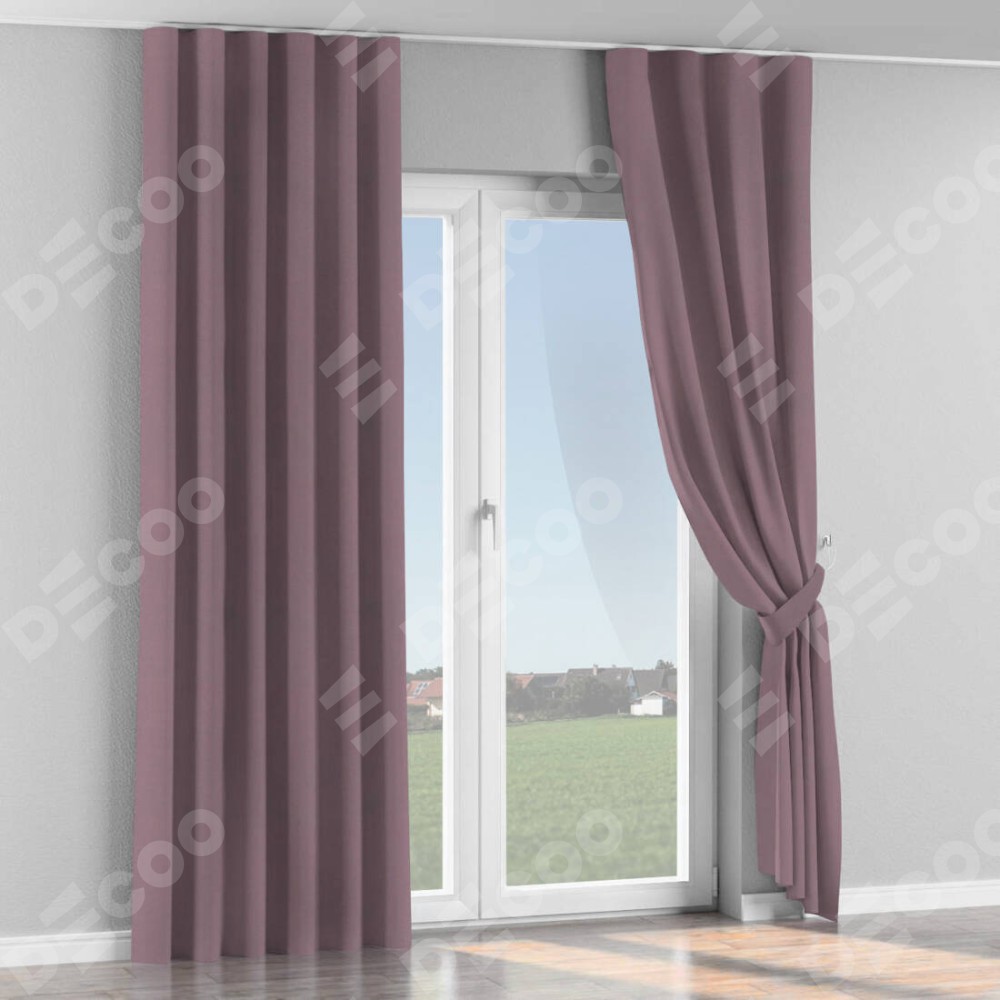 Комплект прямых штор, от производителя «Cortin», пошиты из ткани блэкаут однотонный брусника, артикул ткани 88302. С изнаночной стороны в верхней части штор пристрачивается шторная лента с декоративными складками «Волна». Для создания элегантных складок прямые шторы шьются по стандарту с коэффициентом 1:2 (на 100 см. ширины проёма 200 см. ширины ткани).