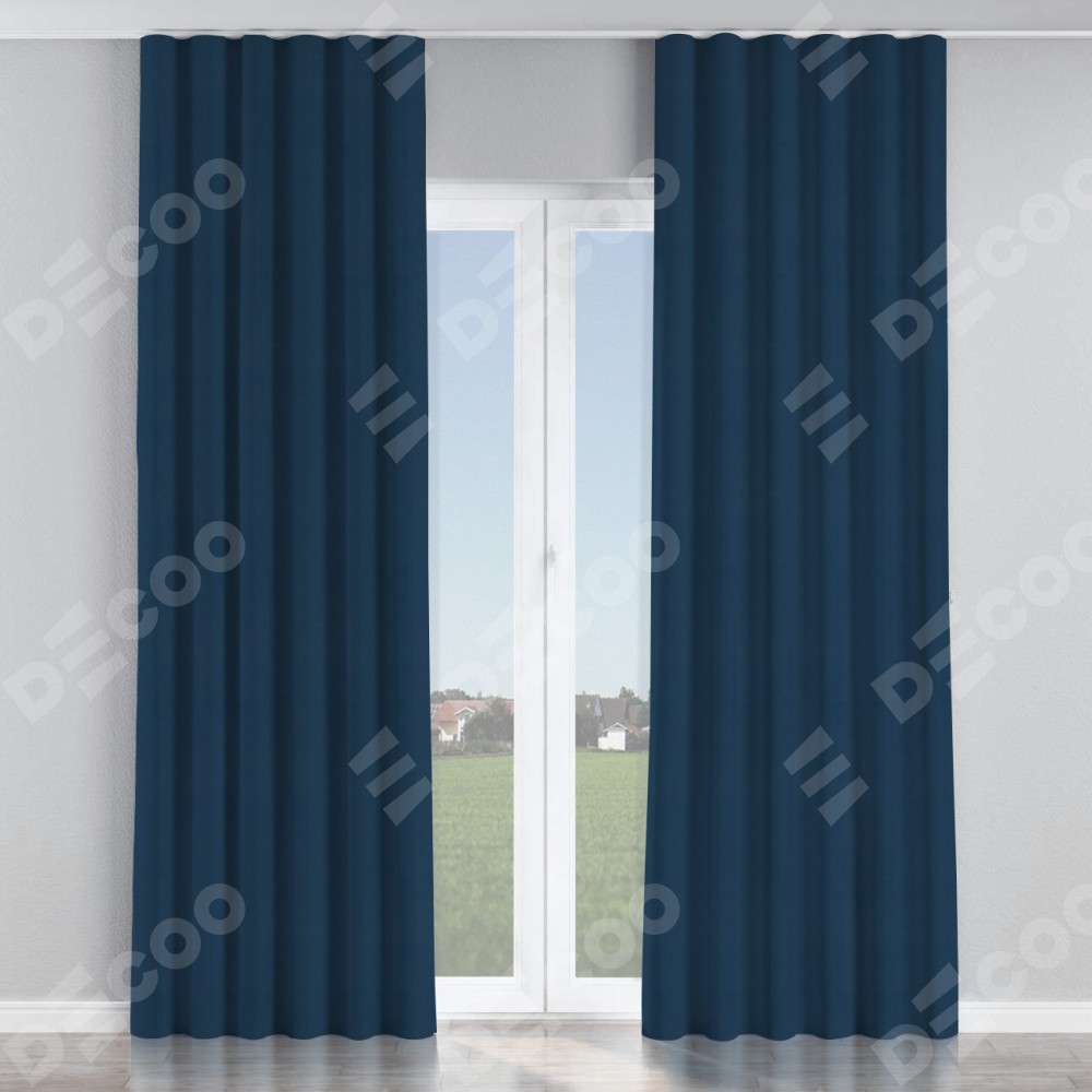 Комплект прямых штор, от производителя «Cortin», пошиты из ткани блэкаут однотонный синий, артикул ткани 29327. С изнаночной стороны в верхней части штор пристрачивается шторная лента с декоративными складками «Волна». Для создания элегантных складок прямые шторы шьются по стандарту с коэффициентом 1:2 (на 100 см. ширины проёма 200 см. ширины ткани).