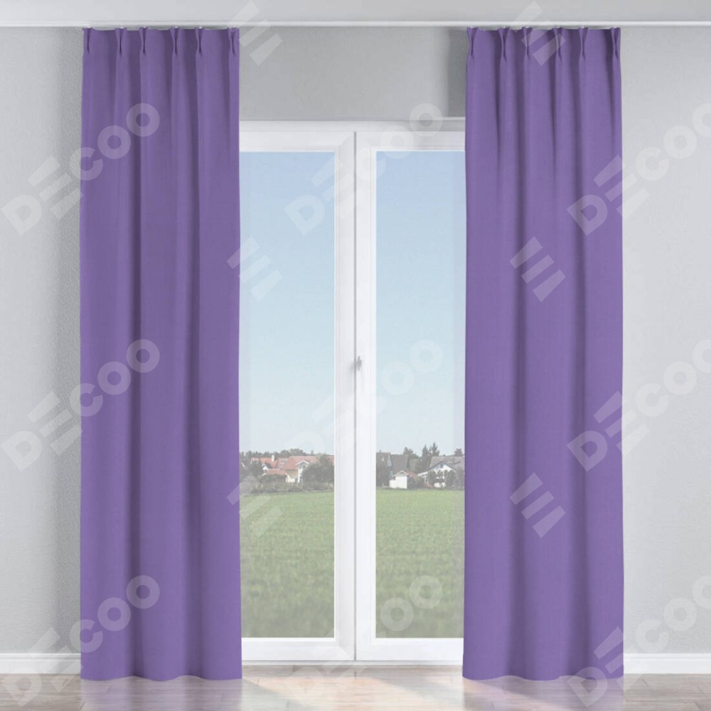 Комплект прямых штор, от производителя «Cortin», пошиты из ткани блэкаут однотонный сиреневый, артикул ткани 88305. С изнаночной стороны в верхней части штор пристрачивается шторная лента с декоративными складками «Кустик». Для создания элегантных складок прямые шторы шьются по стандарту с коэффициентом 1:2 (на 100 см. ширины проёма 200 см. ширины ткани).