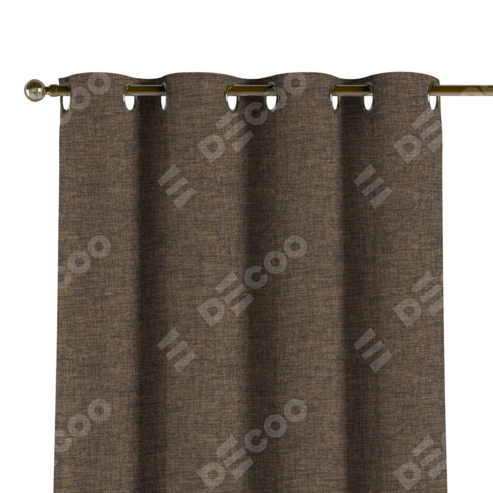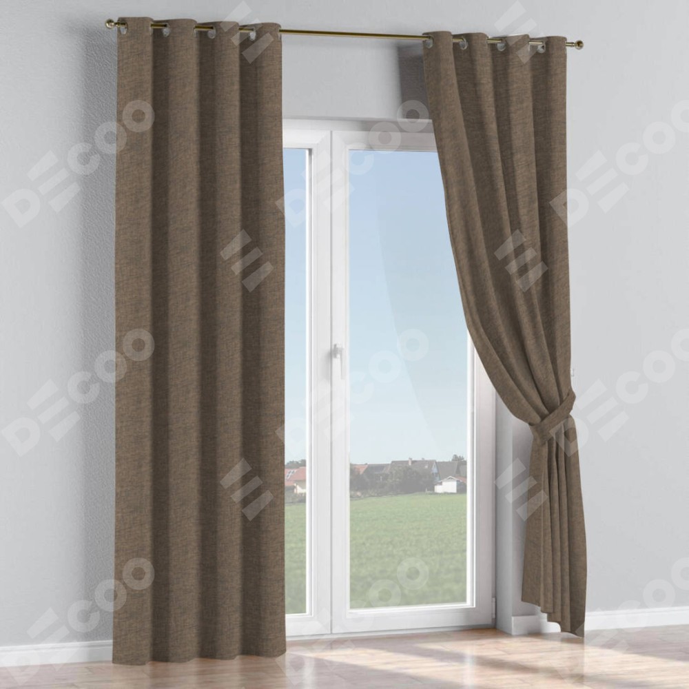 Комплект прямых штор, от производителя «Cortin», пошиты из ткани рогожка димаут коричневый, артикул ткани 80420. Данная модель пошита на люверсах, комплектуется на выбор круглым карнизом и подходит для монтажа на стену или потолок. Прямые шторы на люверсах шьются по стандарту с коэффициентом 1/2 (на 100 см. ширины проёма 200 см. ширины ткани), отличительным преимуществом данной модели является простой способ монтажа. Достаточно повесить ее на трубу и штора готова!