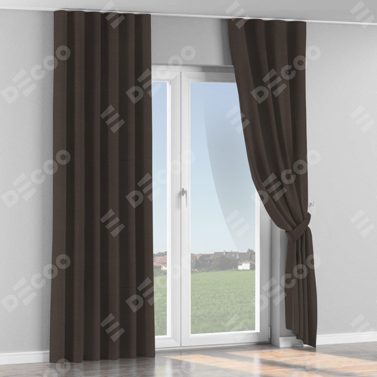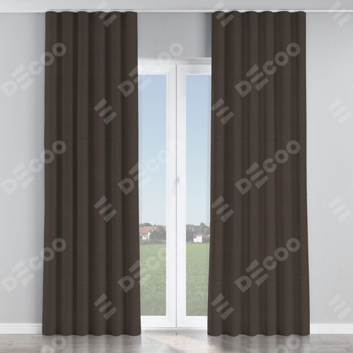 Комплект прямых штор, от производителя «Cortin», пошиты из ткани лён димаут венге, артикул ткани 85410. С изнаночной стороны в верхней части штор пристрачивается шторная лента с декоративными складками «Волна». Для создания элегантных складок прямые шторы шьются по стандарту с коэффициентом 1:2 (на 100 см. ширины проёма 200 см. ширины ткани).