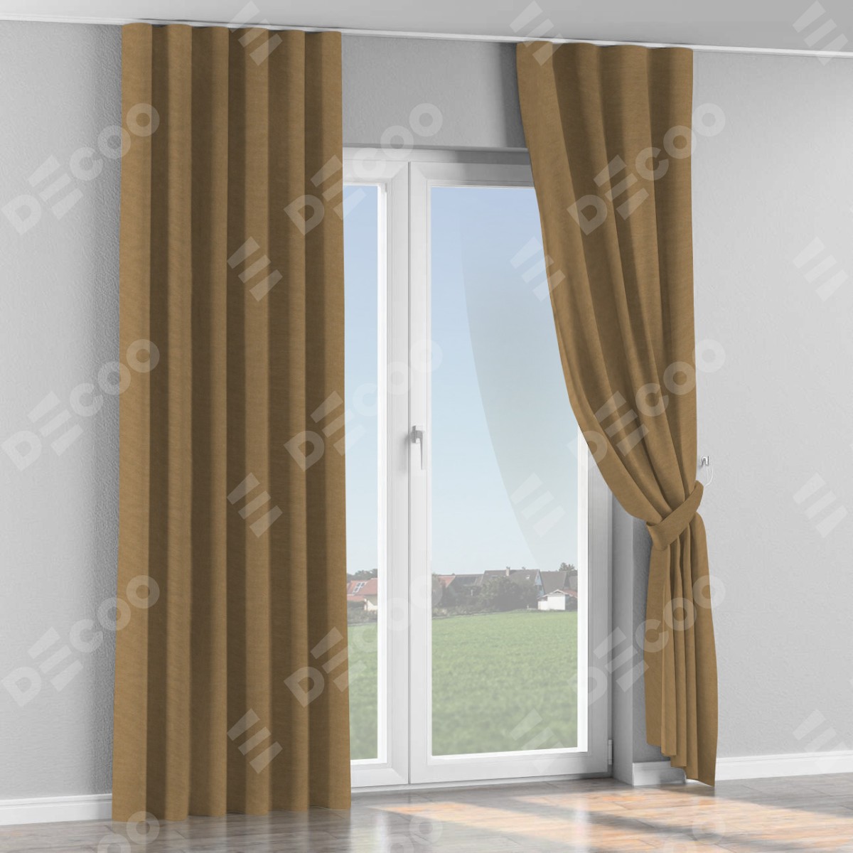 Комплект прямых штор, от производителя «Cortin», пошиты из ткани лён димаут коричневый, артикул ткани 83026. С изнаночной стороны в верхней части штор пристрачивается шторная лента с декоративными складками «Волна». Для создания элегантных складок прямые шторы шьются по стандарту с коэффициентом 1:2 (на 100 см. ширины проёма 200 см. ширины ткани).