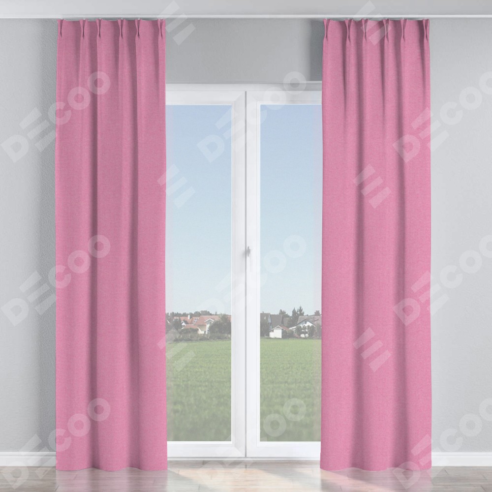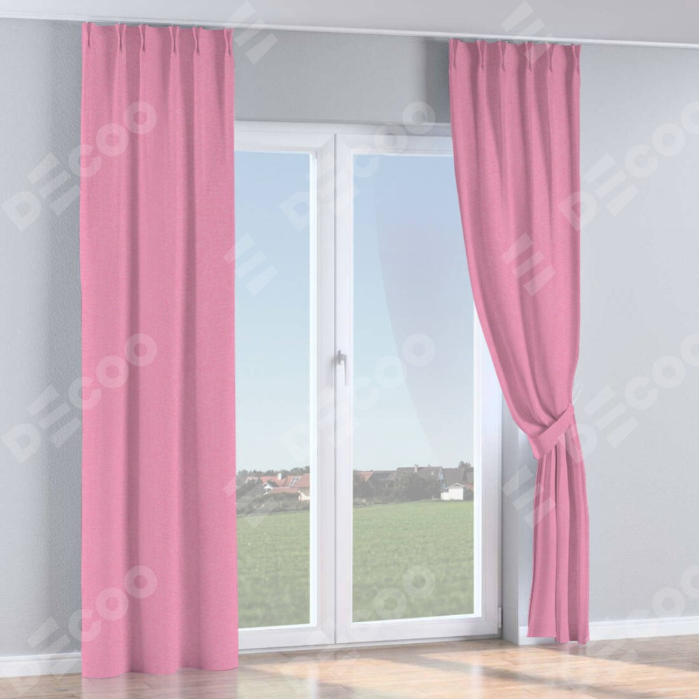 Комплект прямых штор, от производителя «Cortin», пошиты из ткани лён димаут розовый, артикул ткани 16257. С изнаночной стороны в верхней части штор пристрачивается шторная лента с декоративными складками «Кустик». Для создания элегантных складок прямые шторы шьются по стандарту с коэффициентом 1:2 (на 100 см. ширины проёма 200 см. ширины ткани).