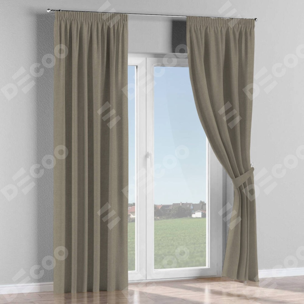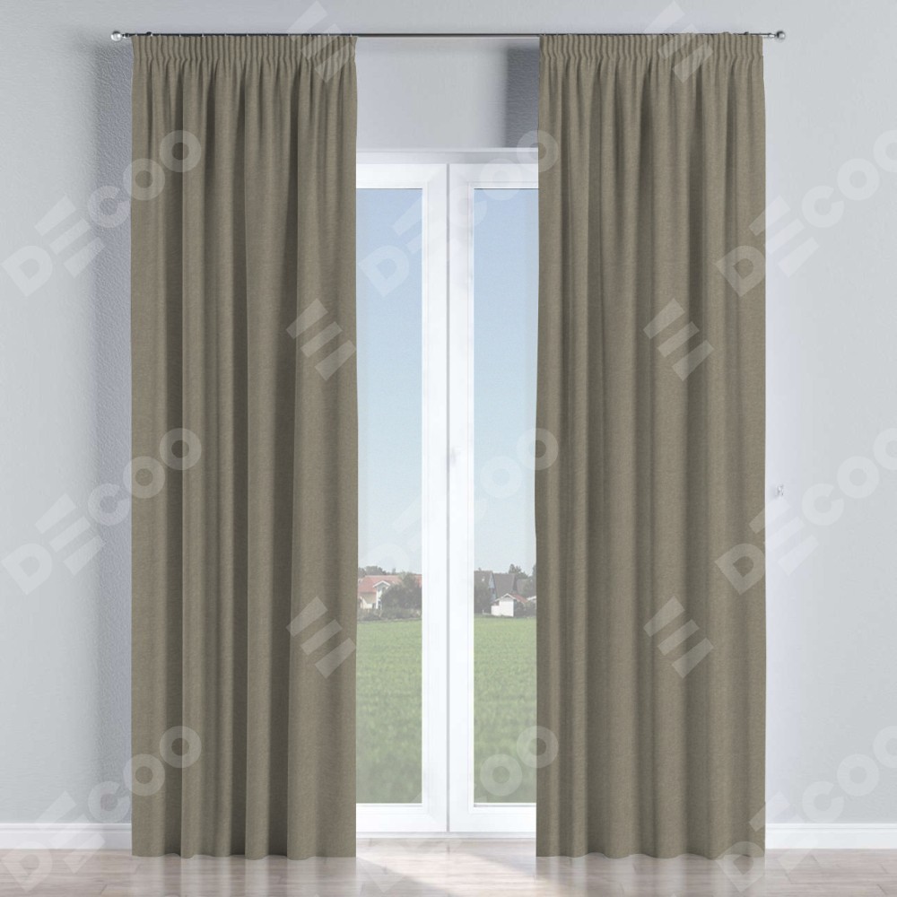 Комплект штор на тесьме «Карандаш», лён димаут серо-зелёный
