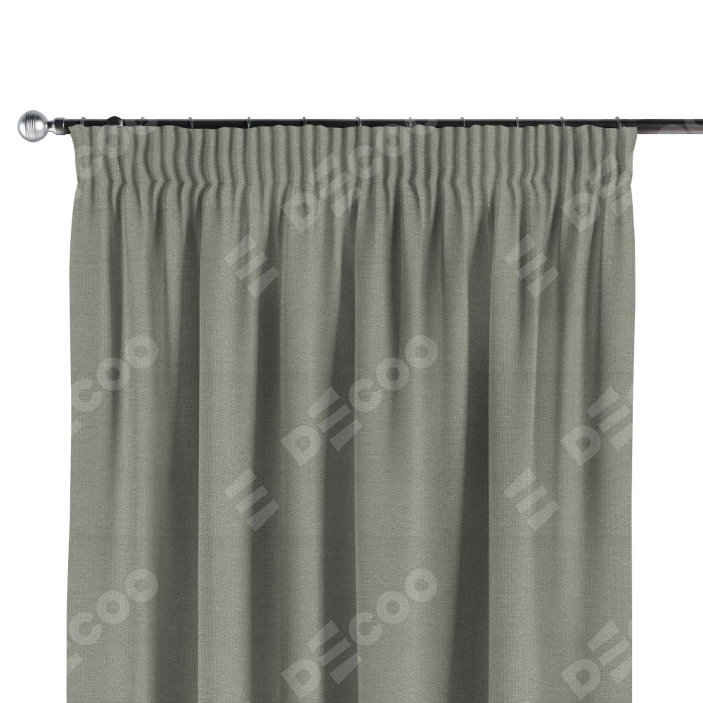 Комплект прямых штор, от производителя «Cortin», пошиты из ткани лён димаут серый, артикул ткани 00001. С изнаночной стороны в верхней части штор пристрачивается шторная лента с декоративными складками «Карандаш». Для создания элегантных складок прямые шторы шьются по стандарту с коэффициентом 1:2 (на 100 см. ширины проёма 200 см. ширины ткани).