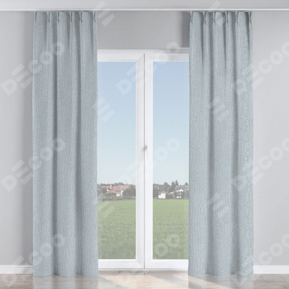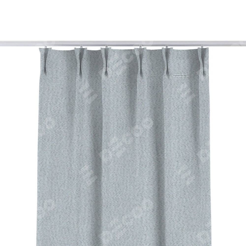 Комплект прямых штор, от производителя «Cortin», пошиты из ткани лён димаут серый, артикул ткани F3. С изнаночной стороны в верхней части штор пристрачивается шторная лента с декоративными складками «Кустик». Для создания элегантных складок прямые шторы шьются по стандарту с коэффициентом 1:2 (на 100 см. ширины проёма 200 см. ширины ткани).