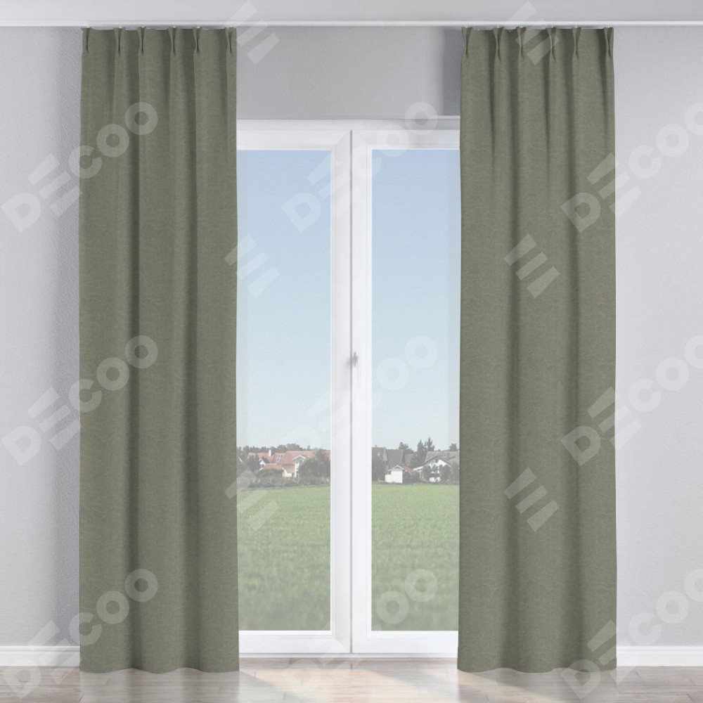 Комплект прямых штор, от производителя «Cortin», пошиты из ткани лён димаут стальной, артикул ткани 25. С изнаночной стороны в верхней части штор пристрачивается шторная лента с декоративными складками «Кустик». Для создания элегантных складок прямые шторы шьются по стандарту с коэффициентом 1:2 (на 100 см. ширины проёма 200 см. ширины ткани).