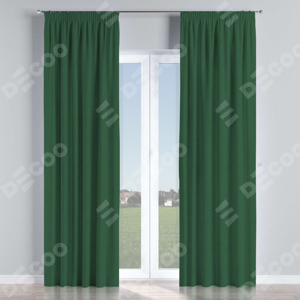 Комплект штор на тесьме «Карандаш», лён димаут тёмно-зелёный