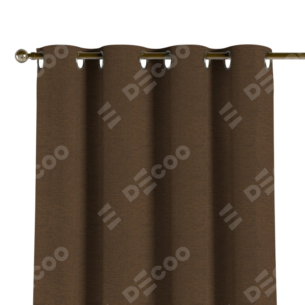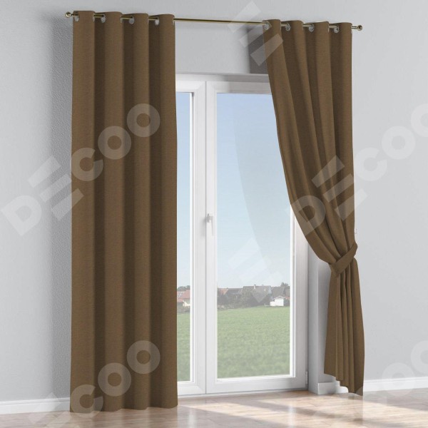 Комплект прямых штор, от производителя «Cortin», пошиты из ткани лён димаут тёмно-коричневый, артикул ткани 83030. Данная модель пошита на люверсах, комплектуется на выбор круглым карнизом и подходит для монтажа на стену или потолок. Прямые шторы на люверсах шьются по стандарту с коэффициентом 1/2 (на 100 см. ширины проёма 200 см. ширины ткани), отличительным преимуществом данной модели является простой способ монтажа. Достаточно повесить ее на трубу и штора готова!