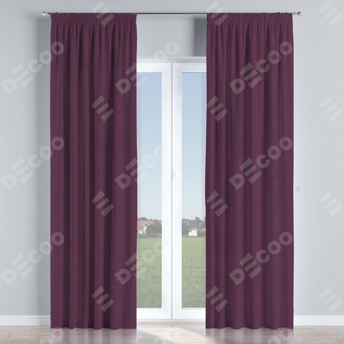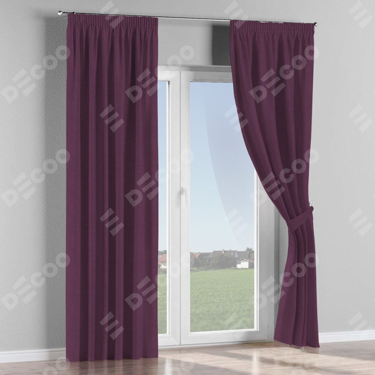 Комплект прямых штор, от производителя «Cortin», пошиты из ткани лён димаут фиолетовый, артикул ткани 8817. С изнаночной стороны в верхней части штор пристрачивается шторная лента с декоративными складками «Карандаш». Для создания элегантных складок прямые шторы шьются по стандарту с коэффициентом 1:2 (на 100 см. ширины проёма 200 см. ширины ткани).