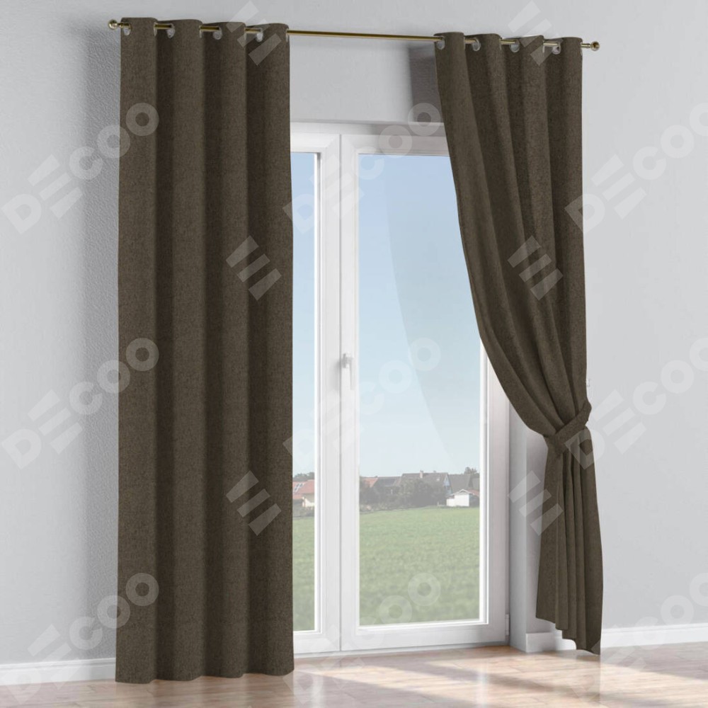 Комплект прямых штор, от производителя «Cortin», пошиты из ткани твид блэкаут тёмно-коричневый, артикул ткани 21584. Данная модель пошита на люверсах, комплектуется на выбор круглым карнизом и подходит для монтажа на стену или потолок. Прямые шторы на люверсах шьются по стандарту с коэффициентом 1/2 (на 100 см. ширины проёма 200 см. ширины ткани), отличительным преимуществом данной модели является простой способ монтажа. Достаточно повесить ее на трубу и штора готова!